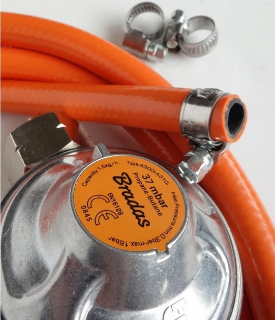 ГАЗОВЫЙ ШЛАНГ 2 м. ГАЗОВЫЙ РЕДУКТОР ДЛЯ ЦИЛИНДРОВ 11 КГ НАБОР ЗАЖИМОВ BRADAS