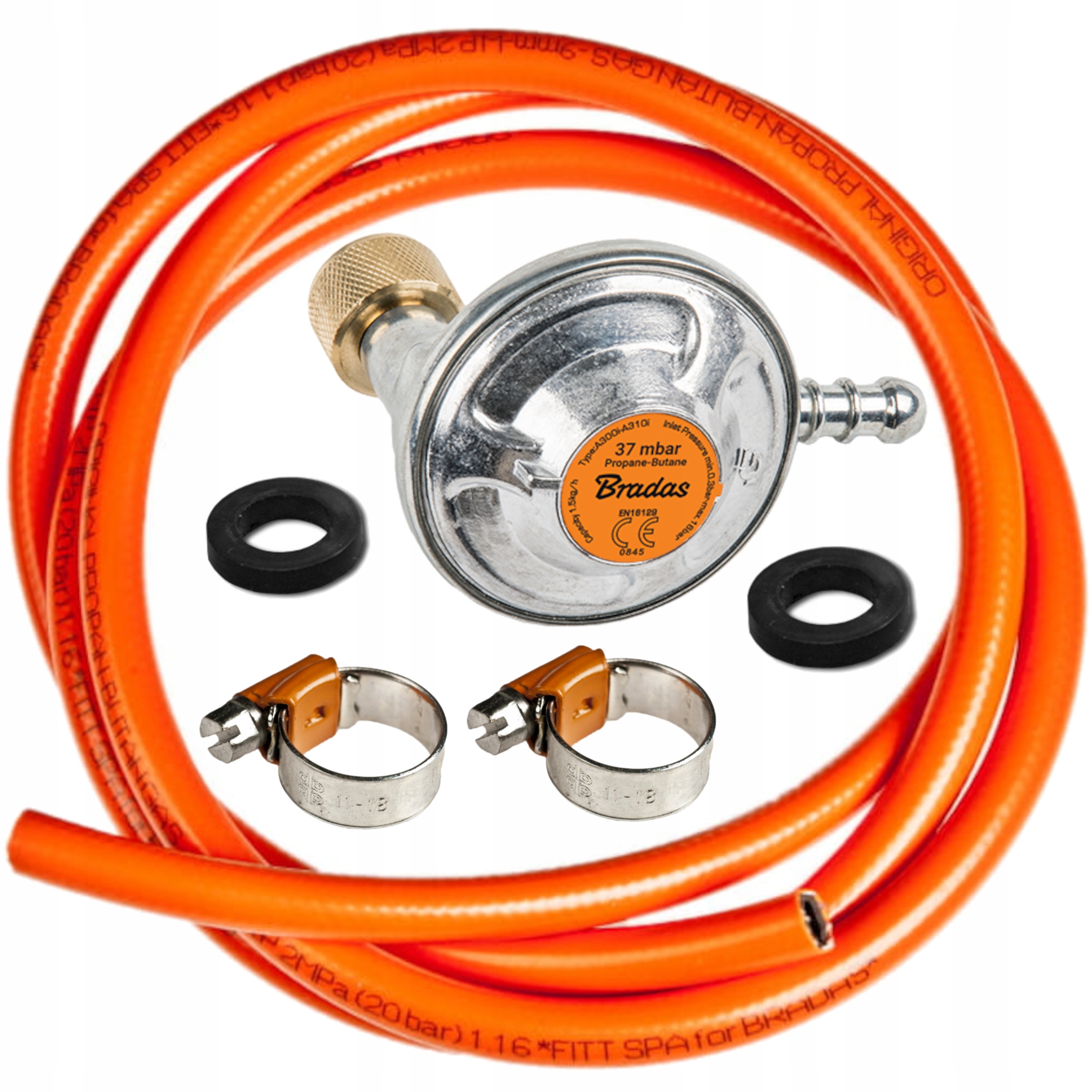 ГАЗОВИЙ ШЛАНГ 2м РЕДУКТОР Колінчасті хомути Прокладки K5