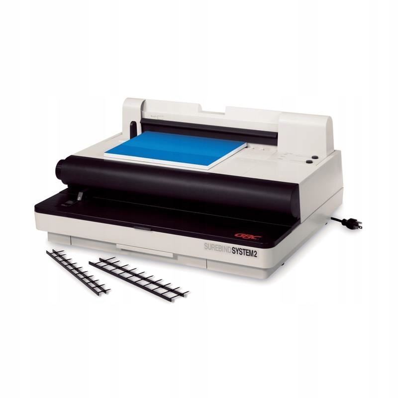 Электрическая переплетная машина SureBind System 2 — отличное устройство для больших офисов. Он пробивает до 22 листов бумаги плотностью 80 г/м² и скрепляет до 500 листов. Имеет механизм реверса режущих ножей в случае слишком большого количества листов бумаги и датчик переполнения контейнера для обрезков. Он имеет регулируемую боковую направляющую, отсек для хранения, направляющую по размеру ремня и индикаторы «Готово» и «Полно». Сшивает документы формата А4 и А5. Время привязки: 10–12 секунд