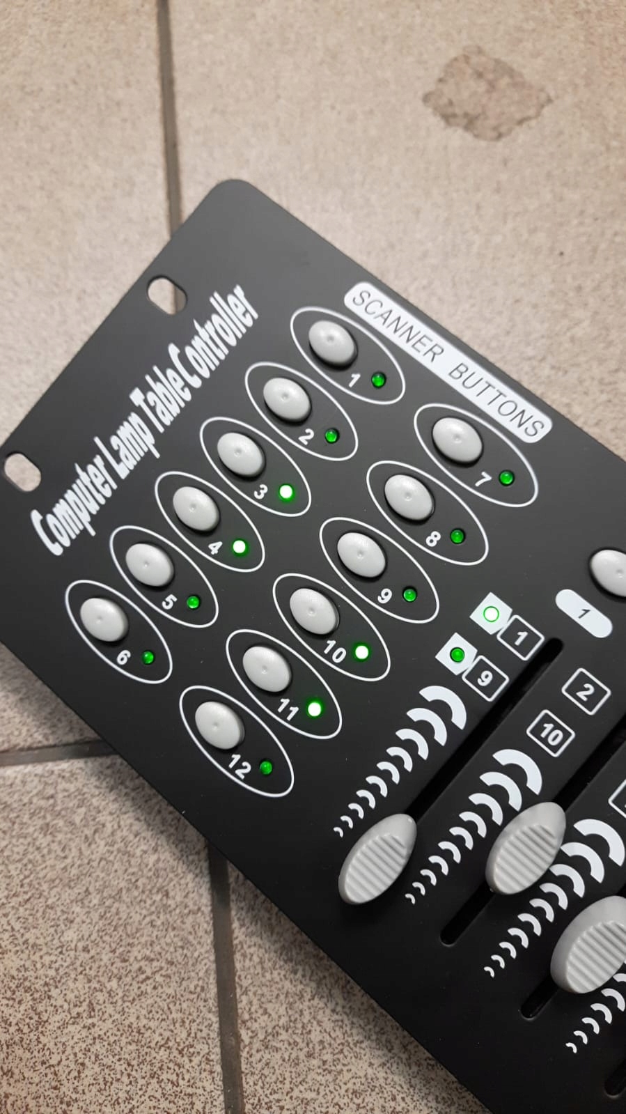 Контроллер DMX для управления освещением и создания эффектов в ритме музыки, идеально подходит для профессионалов и профессионалов, но также может быть используется на любительском уровне для организации вечеринок и развлечения с друзьями. Он питается от источника питания 12 В и может быть подключен через кабель к лазерному проектору, оснащенному разъемом DMX, чтобы иметь возможность программировать его по мере необходимости. Более того, его можно прикрепить к кронштейну благодаря отверстиям по бокам. Технические характеристики: 192 канала DMX, которые могут отображать до 12 световых эффектов DMX. 16 каналов для световых эффектов. 30 ячеек памяти для 8 программируемых сцен. Программируемая память. Переключатель включения/выключения. Соединение DMX. Дисплей, показывающий различные настройки. Размеры: 48 x 13,5 x 7 см (прибл.)