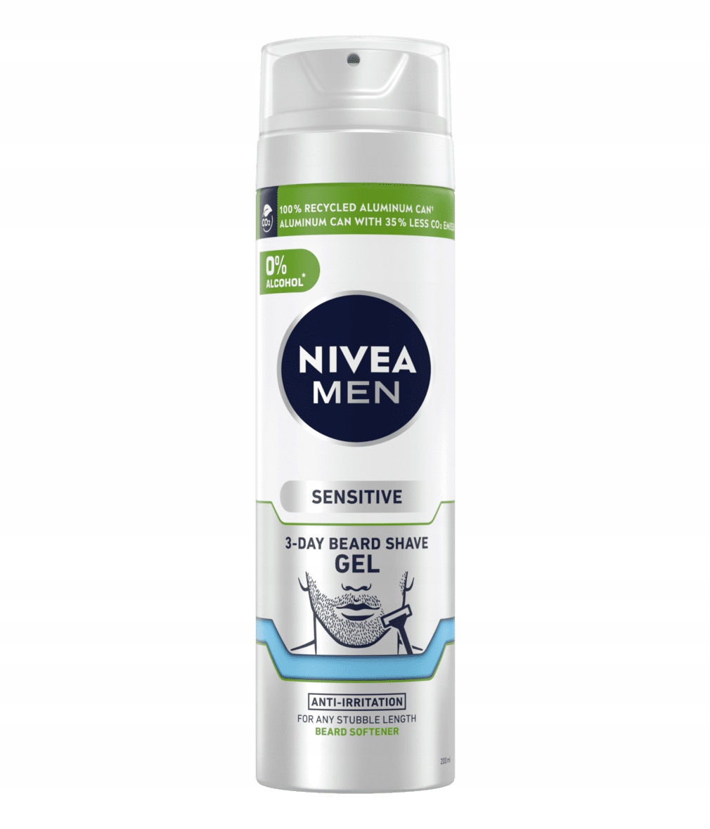 Бритесь одним движением лезвия бритвы — выбирайте проверенный 3-дневный гель для бритья бороды NIVEA MEN Sensitive! Обеспечивает защиту кожи от раздражения и комфорт при бритье.