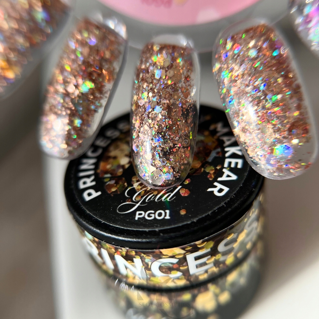 ⭐Makear PG01 Princess Gel Gold гель с золотыми блестками для дизайна ногтей 5 мл⭐