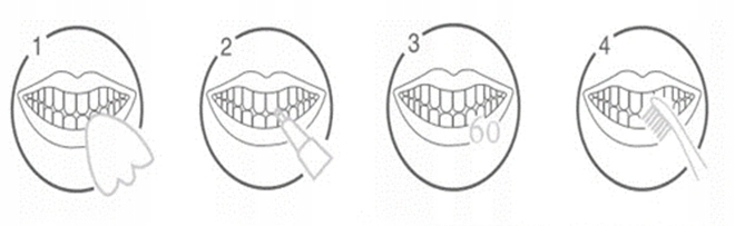 4. Оставьте гель на зубах и сотрите через час. Не ешьте и не пейте в это время и в течение 30 минут после процедуры.