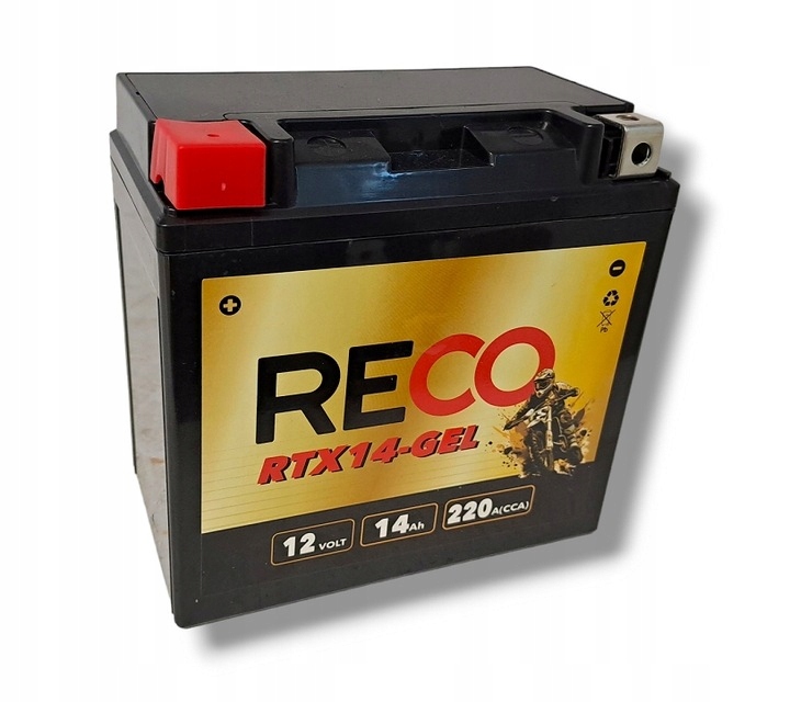 Гелевий мотоциклетний акумулятор Reco RTX14-GEL YTX14-BS 12V 14Ah 220A L+