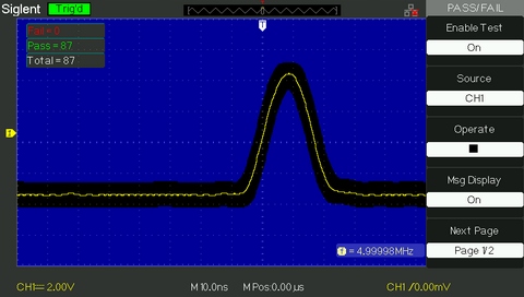 Функция «Годен/Не годен», контролирующая выполнение условия «Годен/не годен», позволяет создать так называемую маски и отслеживание изменений сигнала, а также выдачу сигнала «прошел» или «не прошел» путем оценки того, попадает ли входной сигнал в пределы ранее определенной маски или нет. Функция сравнения сравнения сравнивает текущую измеренную кривую с кривой шаблонной маски, что делает ее пригодной для долгосрочного мониторинга сигнала или автоматического производства и тестирования линии.