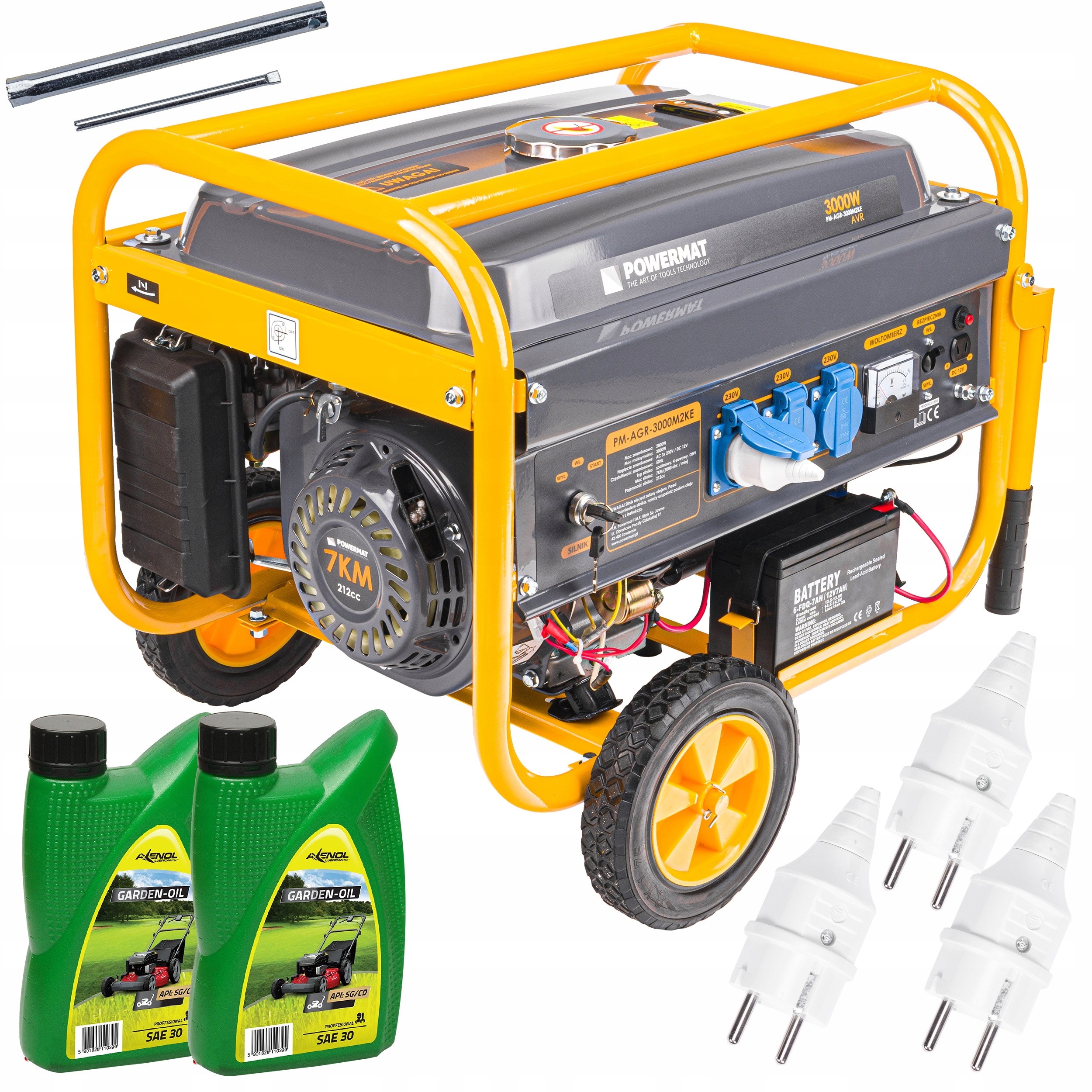 ГЕНЕРАТОРНЫЙ ГЕНЕРАТОР 7 л.с. 230 В 3000 Вт + колеса + аккумулятор + 2x МАСЛО 0,6 л