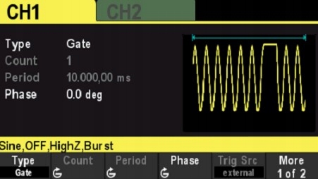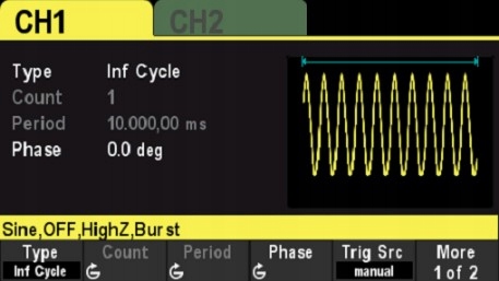 Поддерживает управление пакетным выходом с помощью внутренних, ручных или внешних источников запуска. Поддерживаются три типа импульсов, включая многоцикловые, бесконечные и стробированные.