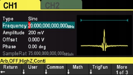 - более 160 видов произвольных сигналов такие как экспоненциальный рост, экспоненциальный спад, сигнал ЭКГ, гауссовский, полуположительный вектор, Лоренц, двухтональный многочастотный сигнал, напряжение постоянного тока и т. д.