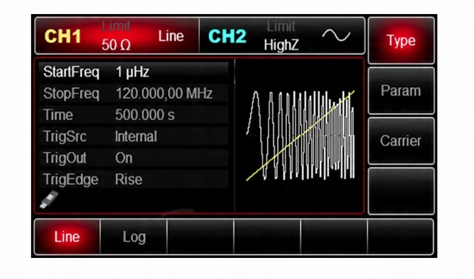 Максимальная выходная частота генерируемого сигнала составляет 60 МГц. Устройство позволяет генерировать множество различных форм сигналов, в том числе произвольных.