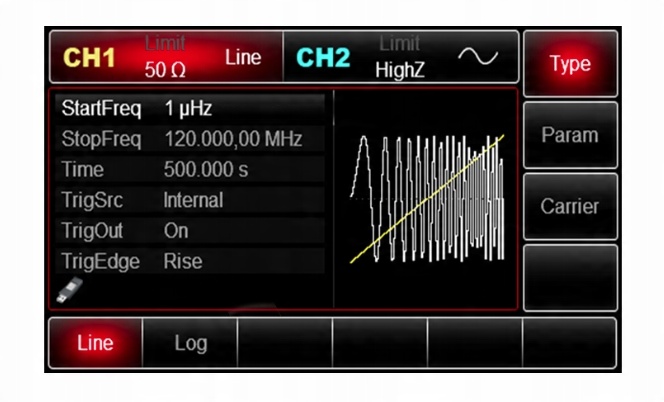 - генерируемые сигналы: синусоидальная, прямоугольная, треугольная, импульсы, шум, постоянный ток, сигналы произвольной формы, гармоники.