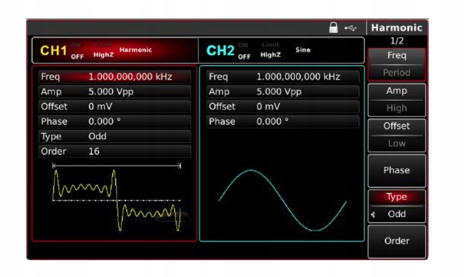 До 16 гармоник определенного порядка, амплитуды и фазы. Возможность установить порядок гармоник.