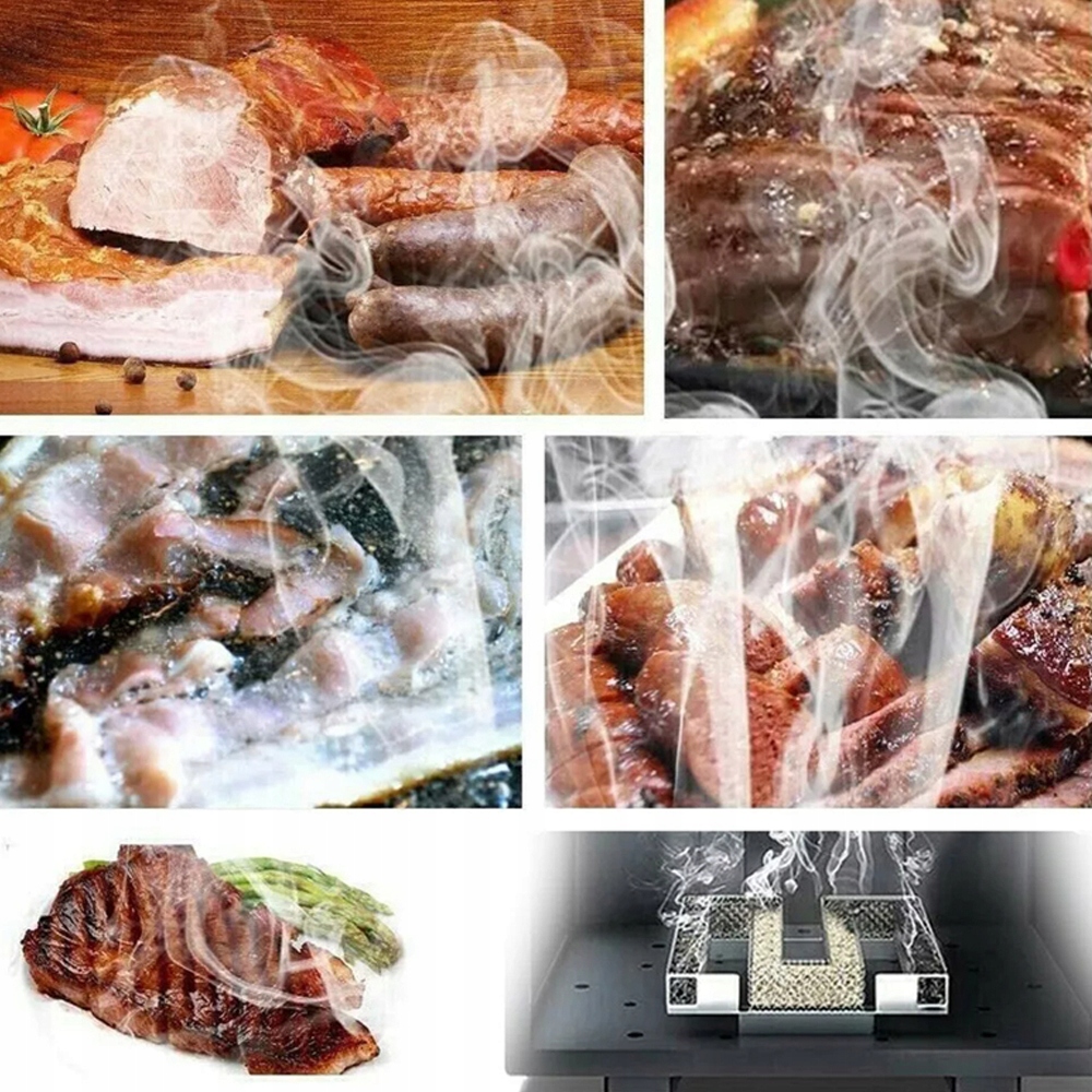 ✔️Высококачественная нержавеющая сталь: Сетчатая корзина для холодного копчения полностью изготовлена из высококачественной нержавеющей стали, которую нелегко сломать, погнуть или заржаветь. Он безопасен, долговечен и легко чистится, что делает его идеальным для курильщиков и грилей. , руководство для курильщиков.