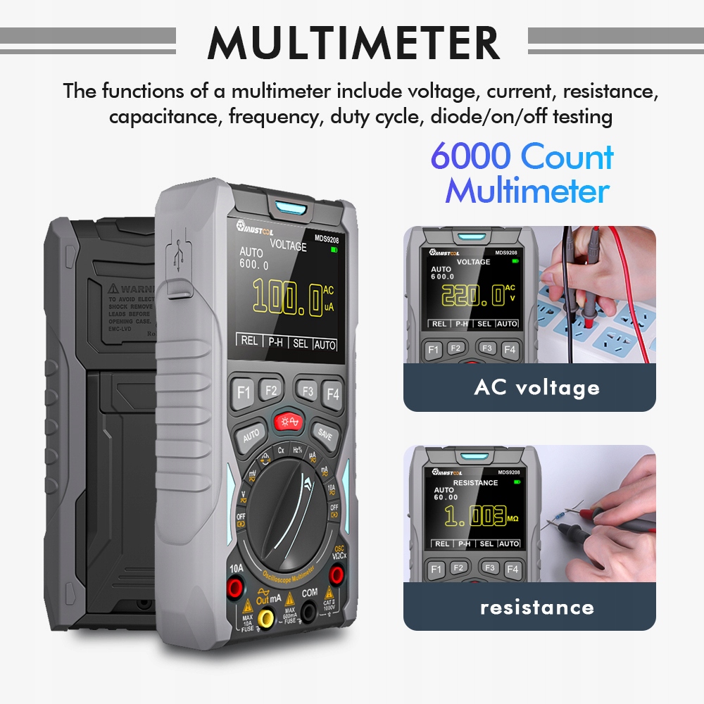 MUSTOOL® MDS9208 С ПОЛНЫМИ ФУНКЦИЯМИ МУЛЬТИМЕТРА, ОСЦИЛЛОСКОПА И ФУНКЦИОНАЛЬНОГО ГЕНЕРАТОРА