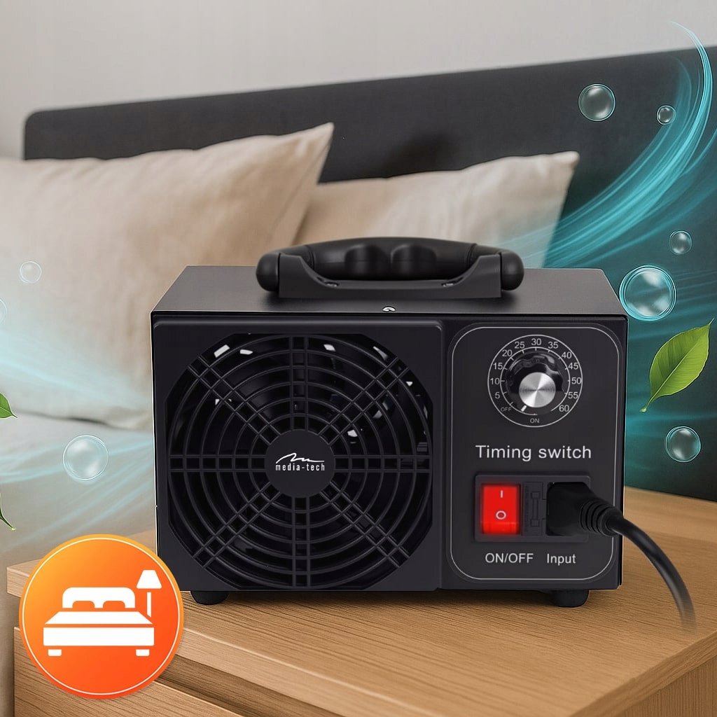Откройте для себя силу чистого воздуха с помощью озонатора MT6540 — устройства, которое эффективно удаляет неприятные запахи, бактерии, вирусы, плесень и аллергены из помещений, офисов, автомобилей и кондиционеров. Благодаря высокому выбросу озона 60 000 мг/ч и мощному вентилятору процесс дезинфекции происходит быстро и эффективно — просто установите таймер и выйдите из помещения.