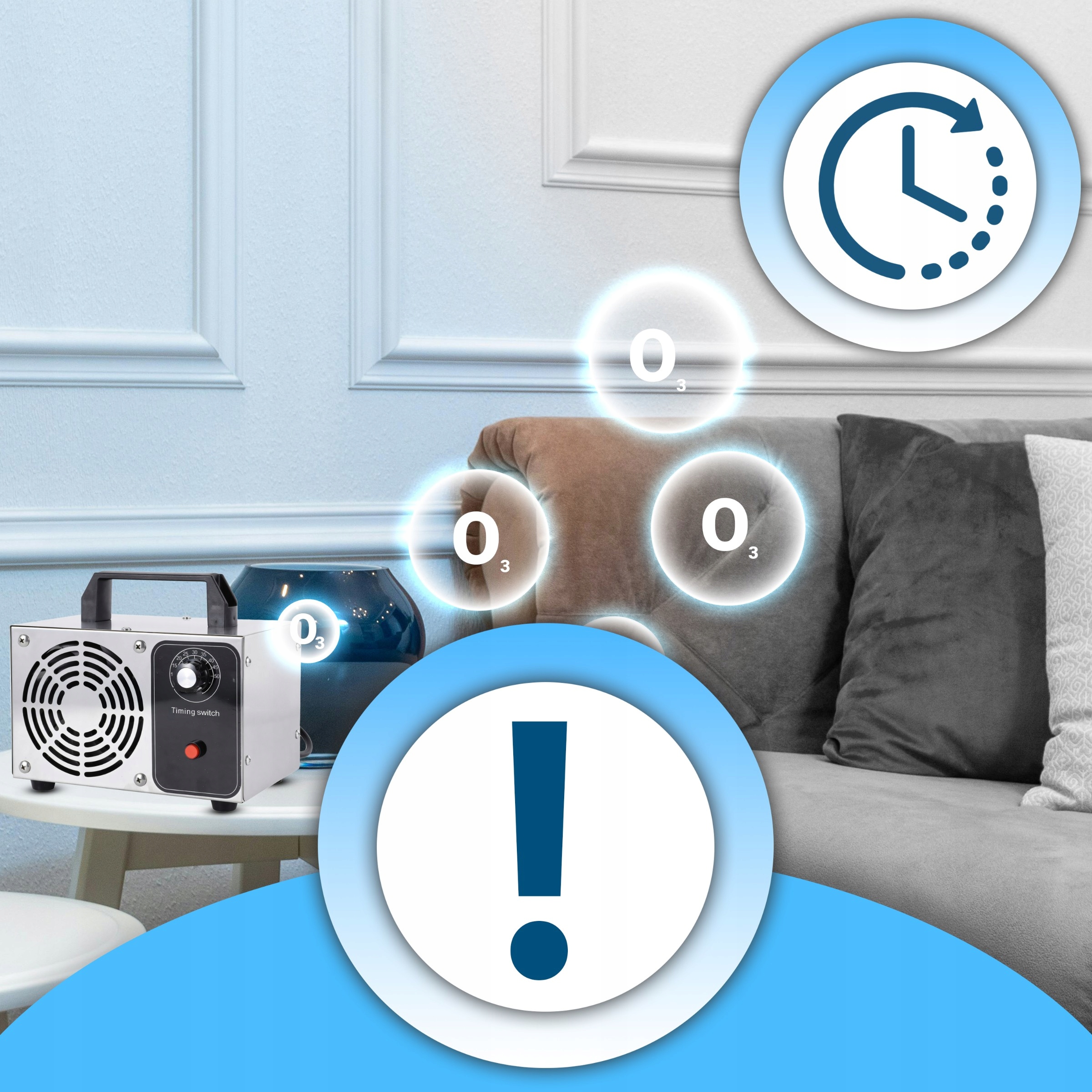 ❗После озонирования помещения необходимо подождать от 30 минут до 2 часов, чтобы озон мог естественным образом разложиться на кислород.❗