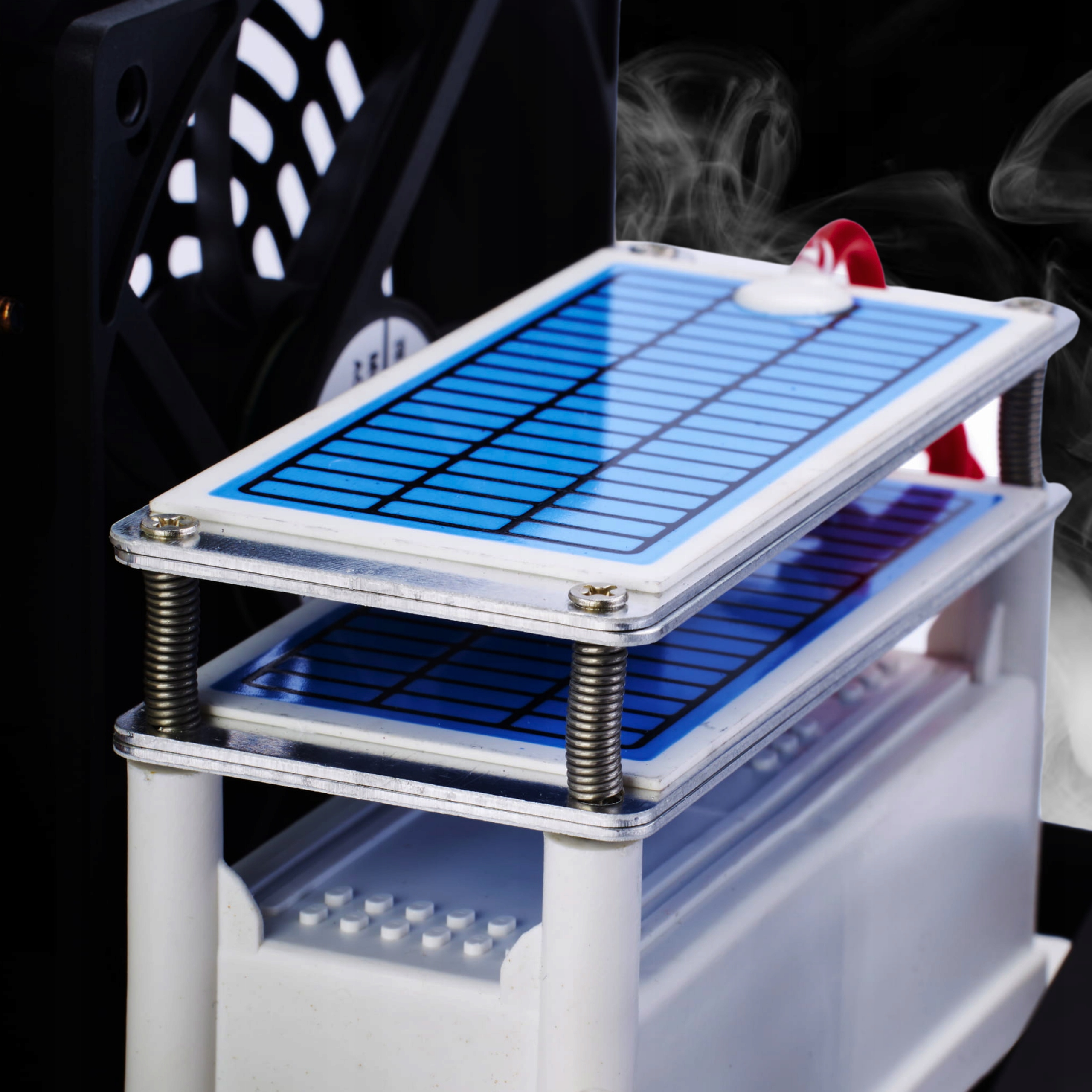 Хотя химические вещества оставляют токсичные остатки, озон эффективно уничтожает микроорганизмы на молекулярном уровне, и после вентиляции он безопасен для людей и животных. Для соревнований требуется вентиляция до нескольких часов, наш генератор быстрее снизит концентрацию озона до безопасного уровня.