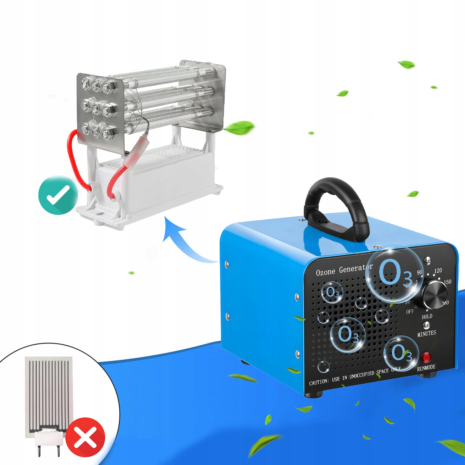 Генератор имеет максимальную выходную мощность 60000 мг/ч и подходит для помещения площадью 300 м2. Выход озона более стабильный, эффективность на 50% выше, чем у обычного озонового аппарата.