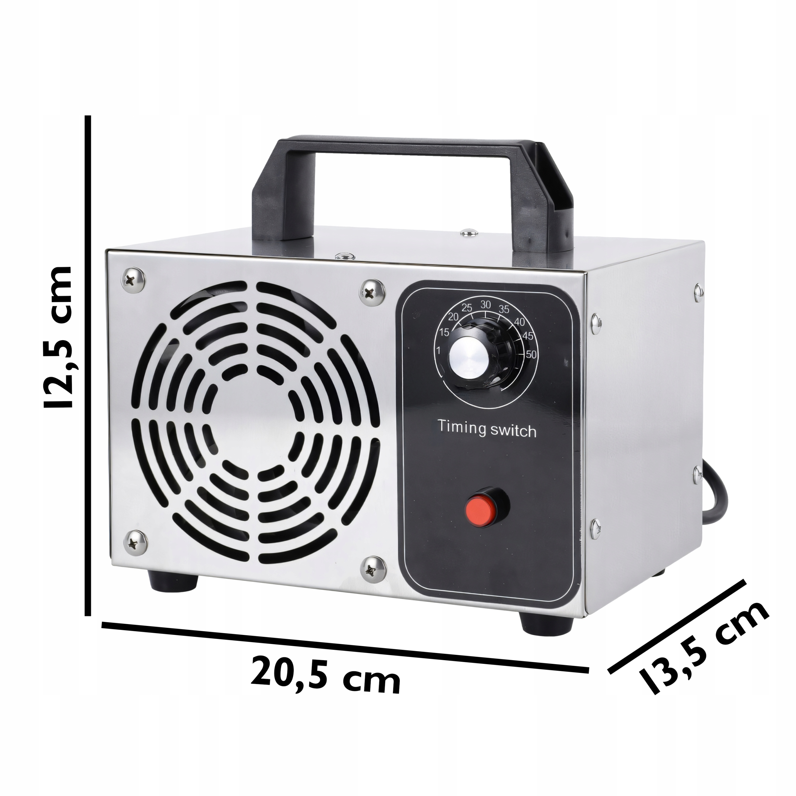 Таймер позволяет регулировать время озонирования в зависимости от размера помещения или степени загрязнения воздуха, благодаря чему прибор работает эффективно, и вам не придется не забывать его выключать. Данное решение обеспечивает полный контроль над процессом очистки воздуха.