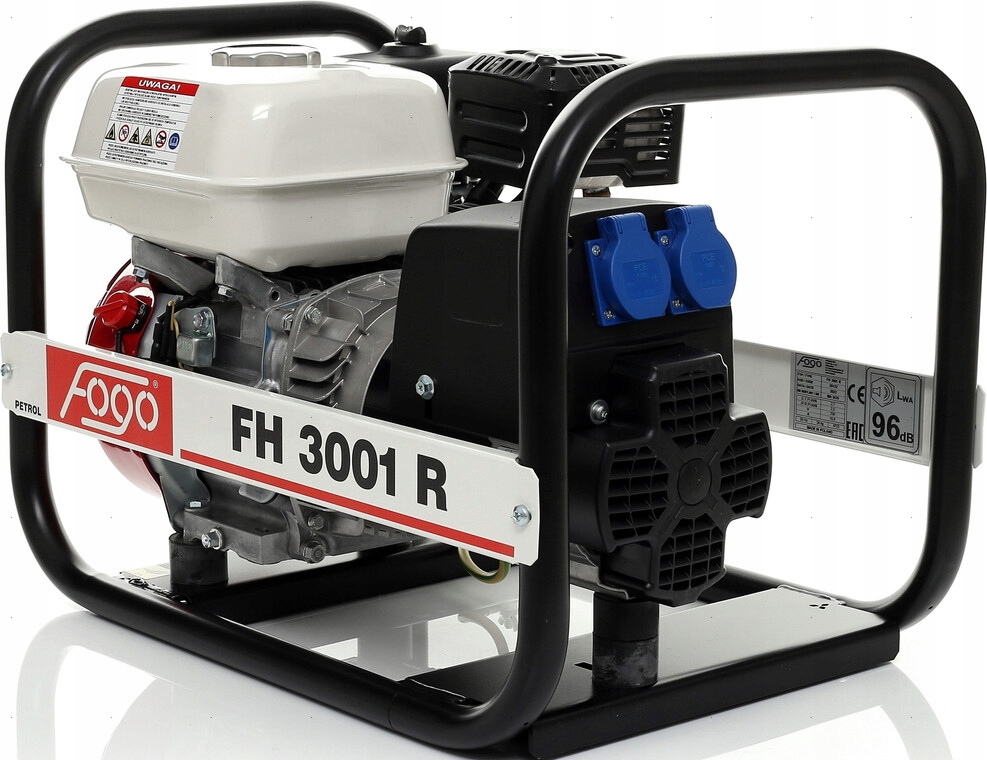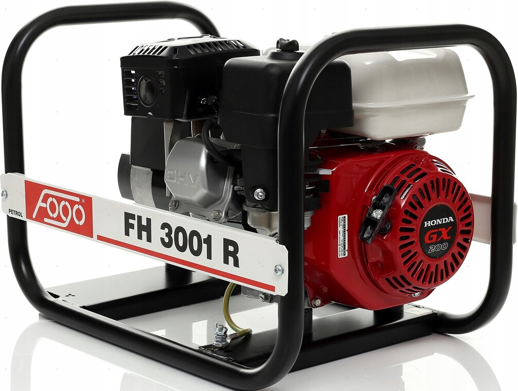 Генераторная установка Fogo FH 3001 R представляет собой портативный генератор с номинальной мощностью 2,5 кВт (максимальная мощность: 2,7 кВт) для однофазного тока. Генератор приводится в действие бензиновым двигателем Honda GX 200 объемом 196 см3 с ручным запуском. Устройство относится к серии AVR с электронным регулятором напряжения, поэтому в основном рекомендуется для питания таких устройств, как компьютер, сварочный аппарат, освещение, электропечь и т.п. Генератор FH 3001 R оснащен синхронным генератором со степенью защиты IP23. класса, который защищен от случайного прикосновения пальцем и разбрызгивания воды под любым углом до 60 градусов от вертикали во все стороны. Машина имеет две однофазные розетки на 16 А, защиту от перегрузки и датчик уровня масла. Топливный бак генератора имеет емкость 3,1 л, а расход топлива при нагрузке 75% составляет 1,4 л/ч.