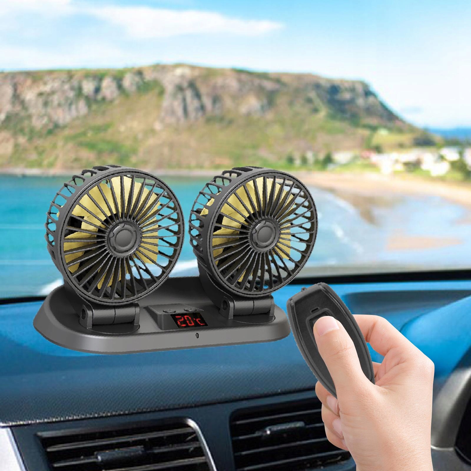 [Датчик температуры NTC]: этот автомобильный вентилятор оснащен датчиком температуры NTC, который может контролировать температуру внутри автомобиля в режиме реального времени. Вентиляторы с двумя головками работают независимо для большей гибкости и удобства.