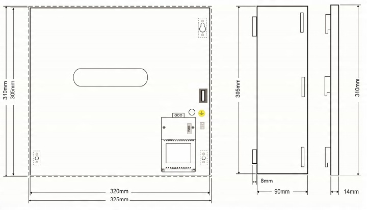 - Внешние размеры корпуса: 320 x 305 x 90+8 мм [+/-2 мм] li>