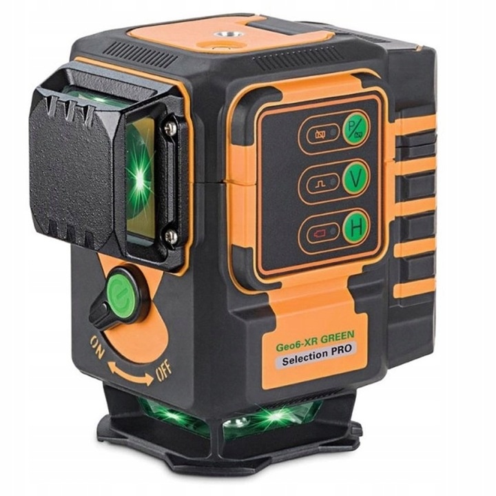 Шесть лазерных крестов, установленных под прямым углом — они позволяют определять горизонтали, вертикали и прямые углы.