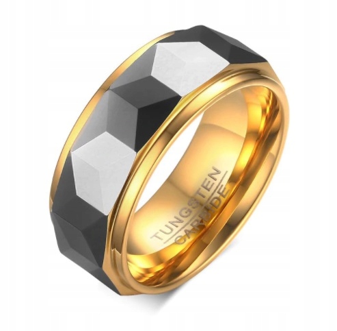 Красивое обручальное кольцо из графитового золота с геометрическим узором.