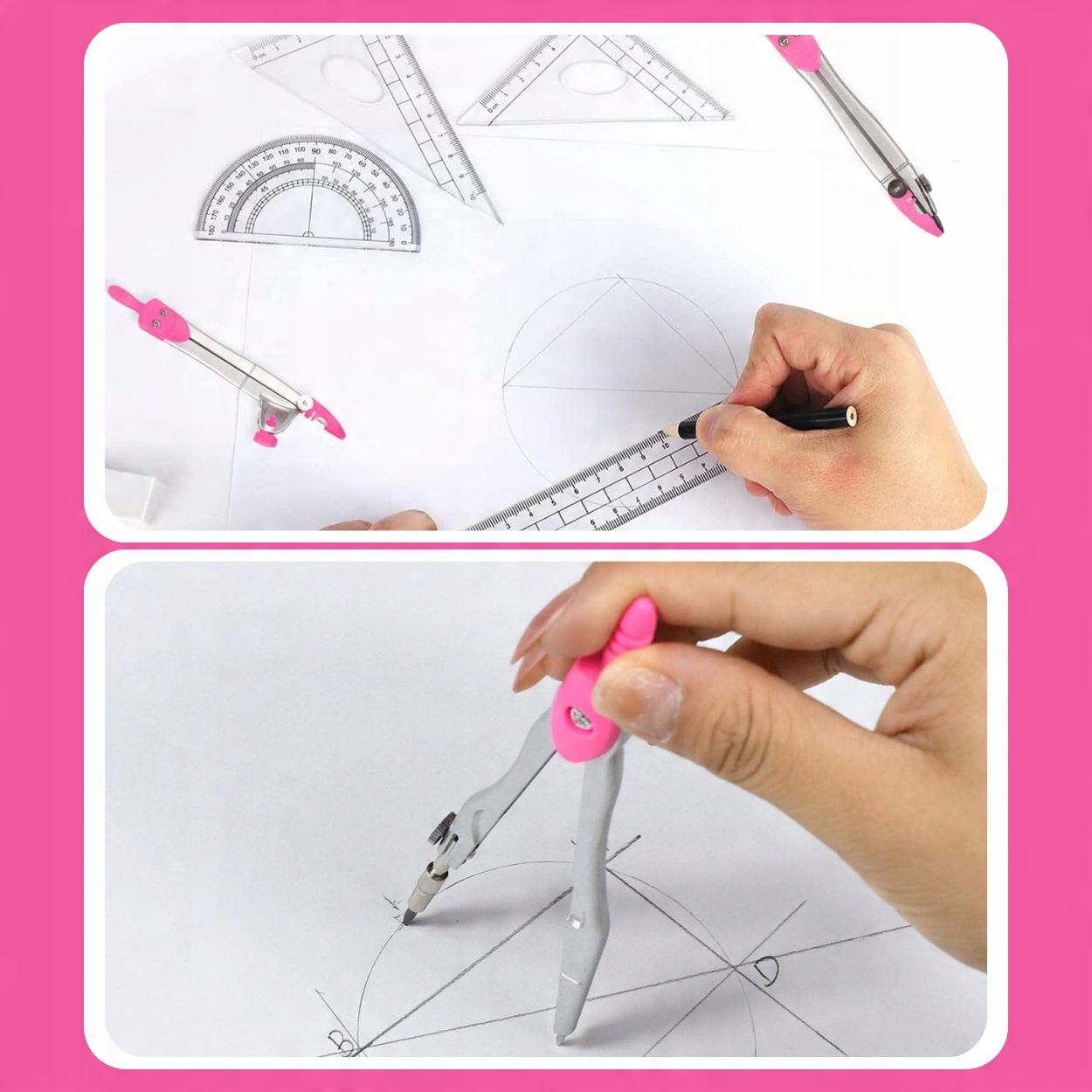 ✔️Стильный цвет✔️Розовый цвет набора делает его привлекательным и выделяет среди других аксессуаров. Это отличный выбор для людей, которые хотят совместить функциональность с эстетикой в своих геометрических инструментах.