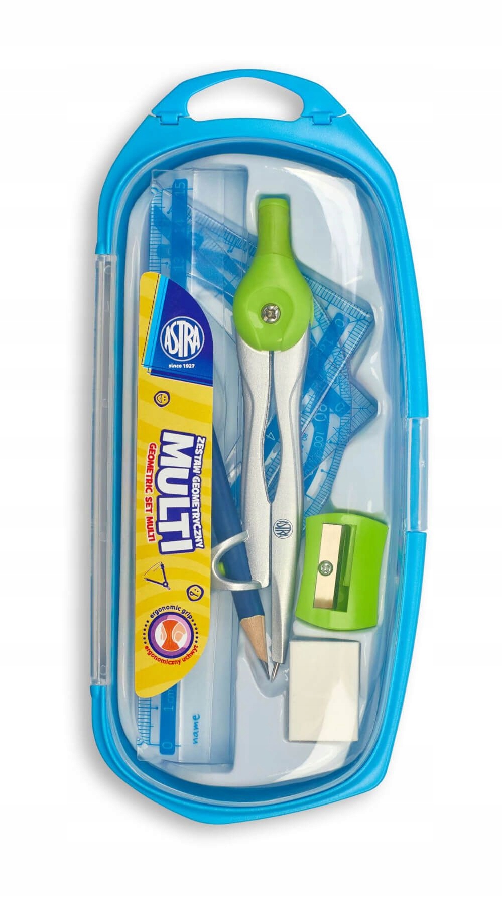 Набор геометрических приспособлений от Astra в пластиковой коробке. В набор входит 8 элементов: