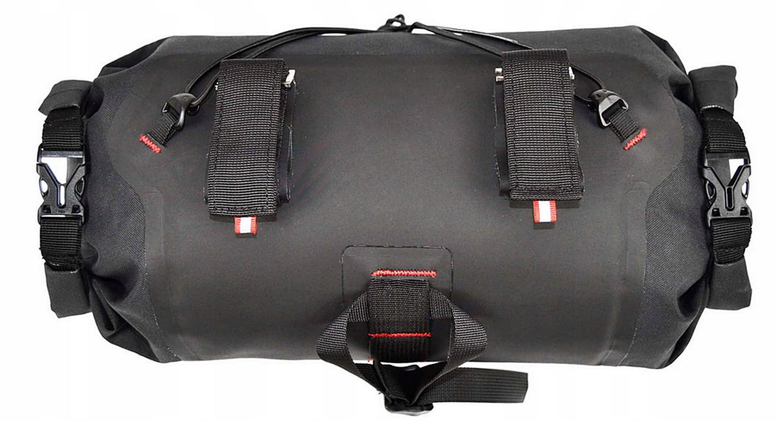 Сумка крепится к рулю с помощью липучки, изготовленной из усиленный Hypalon, чтобы не повредить руль и тем самым обеспечить большее сцепление.