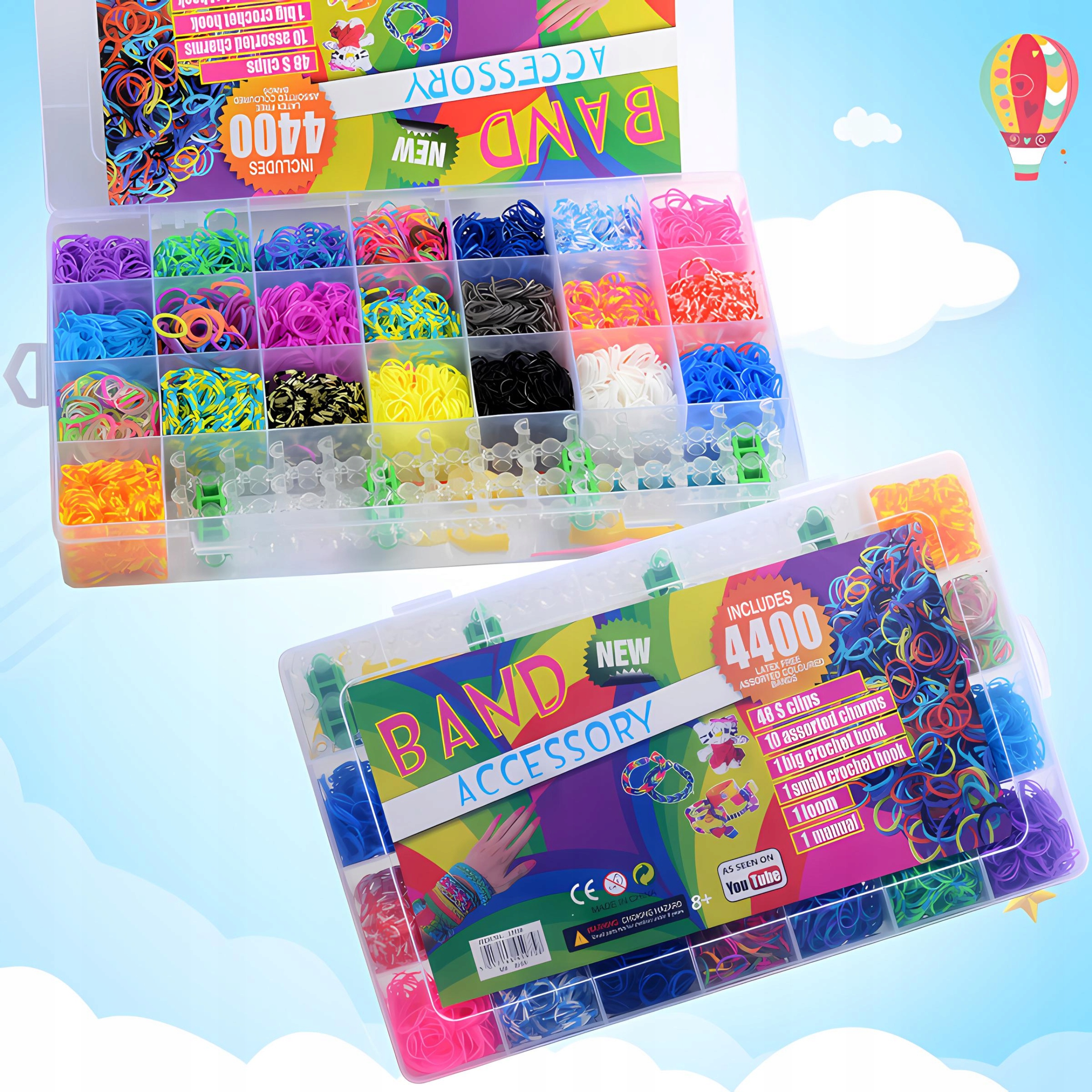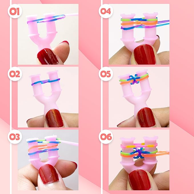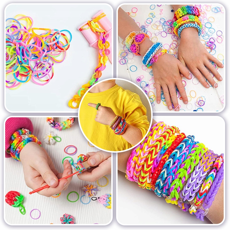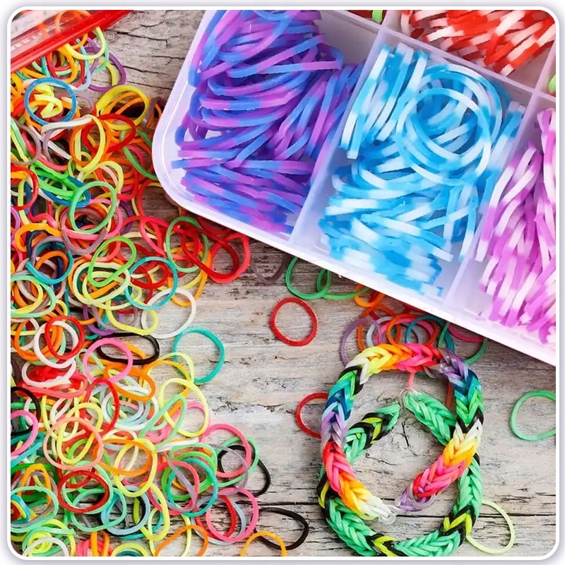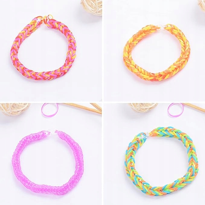 Набор содержит до 4400 гибких эластиков в разных цветах b>, что позволяет неограниченное количество комбинаций. Благодаря богатой цветовой палитре, ребенок может создавать уникальные узоры, экспериментировать с цветами и выражать свое творчество. Только браслеты для создания, но также и ожерелья, кольца или ключевые кольца