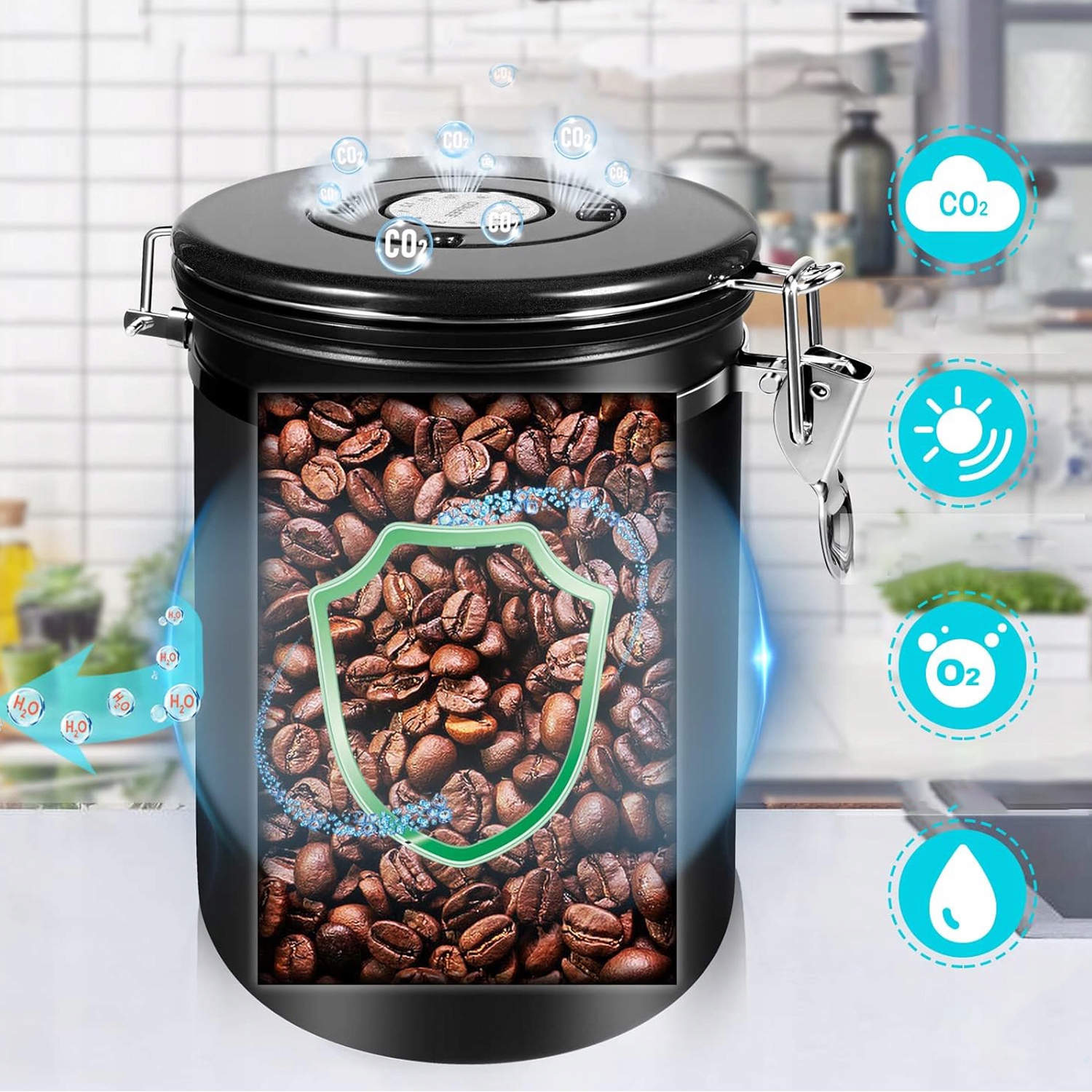 - Наш герметичный контейнер из нержавеющей стали для молотого кофе сохраняет вкус и аромат кофейных зерен нетронутыми и защищенными от окисления благодаря вакуумному уплотнению из 100% пищевого силиконового каучука и клапану CO2.