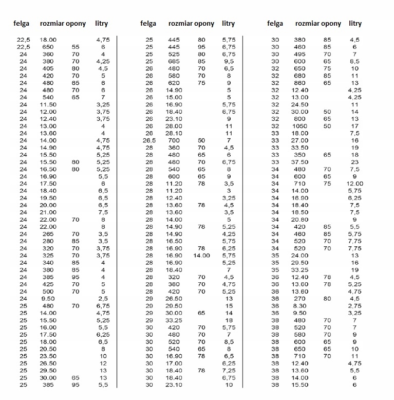НИЖЕ ПРЕДСТАВЛЕНА ТАБЛИЦА ПРИМЕНЕНИЯ В ГРУЗОВЫХ, СЕЛЬСКОХОЗЯЙСТВЕННЫХ И ПРОМЫШЛЕННЫХ ШИНАХ: