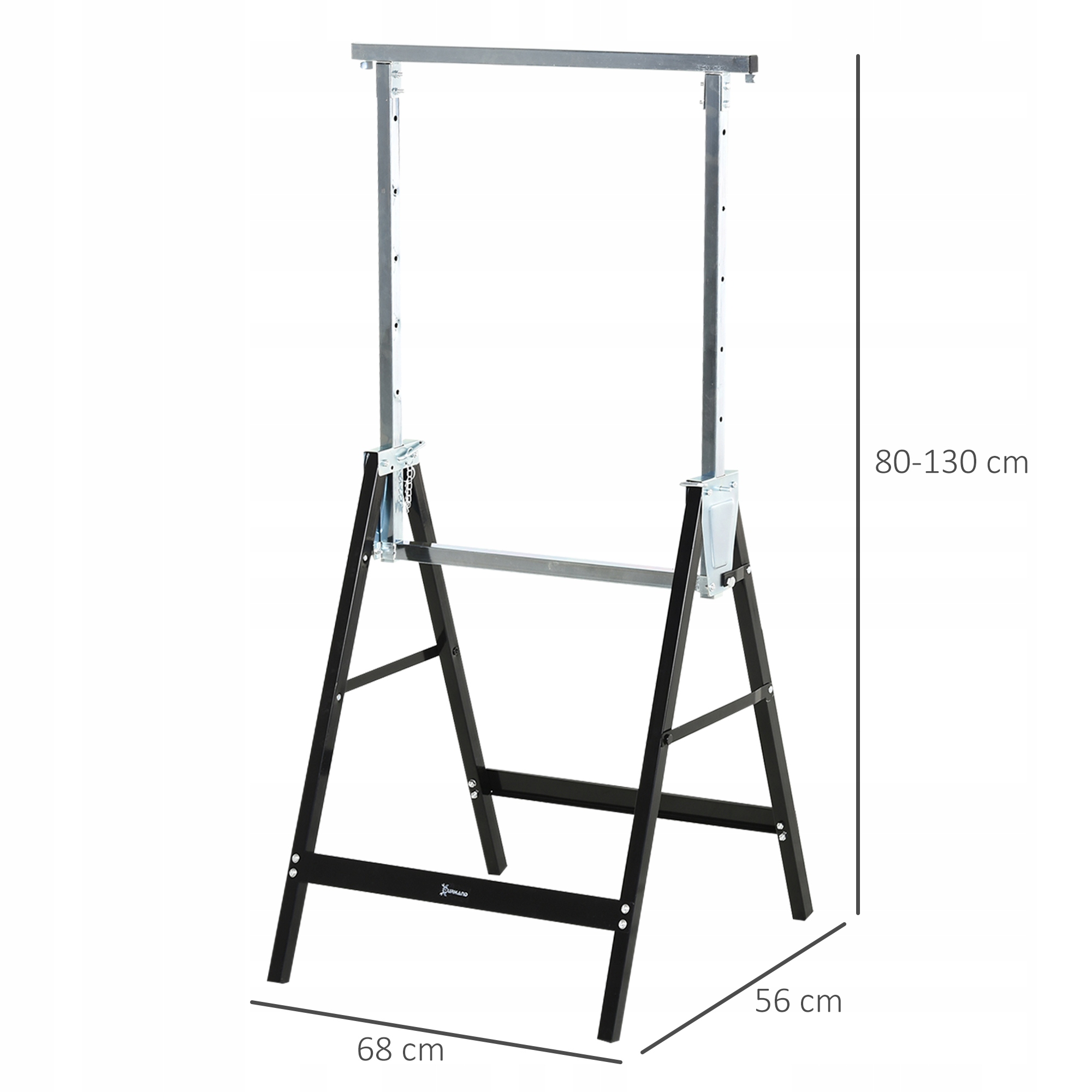 ● Цвет: черный; ● Материал: металл; ● Общие размеры продукта: 68 x ширина56 x составляет 80-130 см; ● Постоянный поперечный стержень: 53 см; ● Размеры сложного продукта: 68 x ширина15 x составляет 80 см; ● Нагрузка емкость: 200 кг; ● Чистый вес: 8 кг;