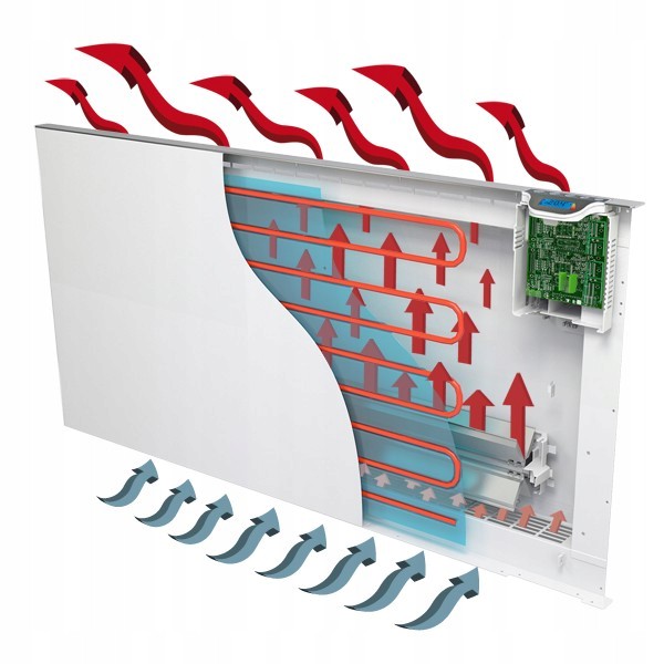 - переменная мощность- радиатор выбирает правильную мощность в условиях и устанавливает температуру. Встроенный интеллектуальный термостат с возможностью программирования радиатора на всю неделю.
