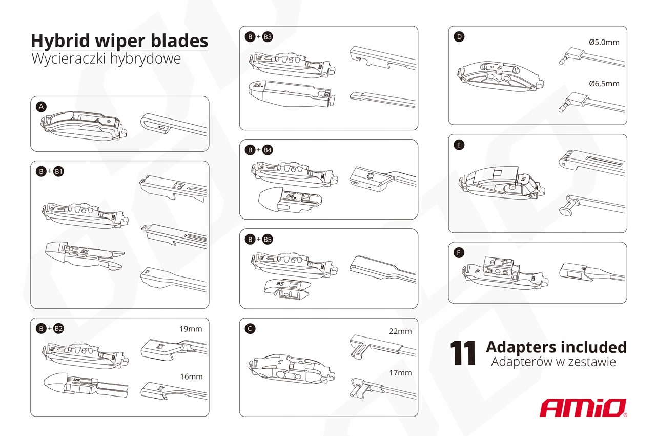 Каждая щетка стеклоочистителя, помимо стандартного крепления крюка Type-U, имеет 11 дополнительных адаптеров, подходящих для 99% автомобилей на наших дорогах.