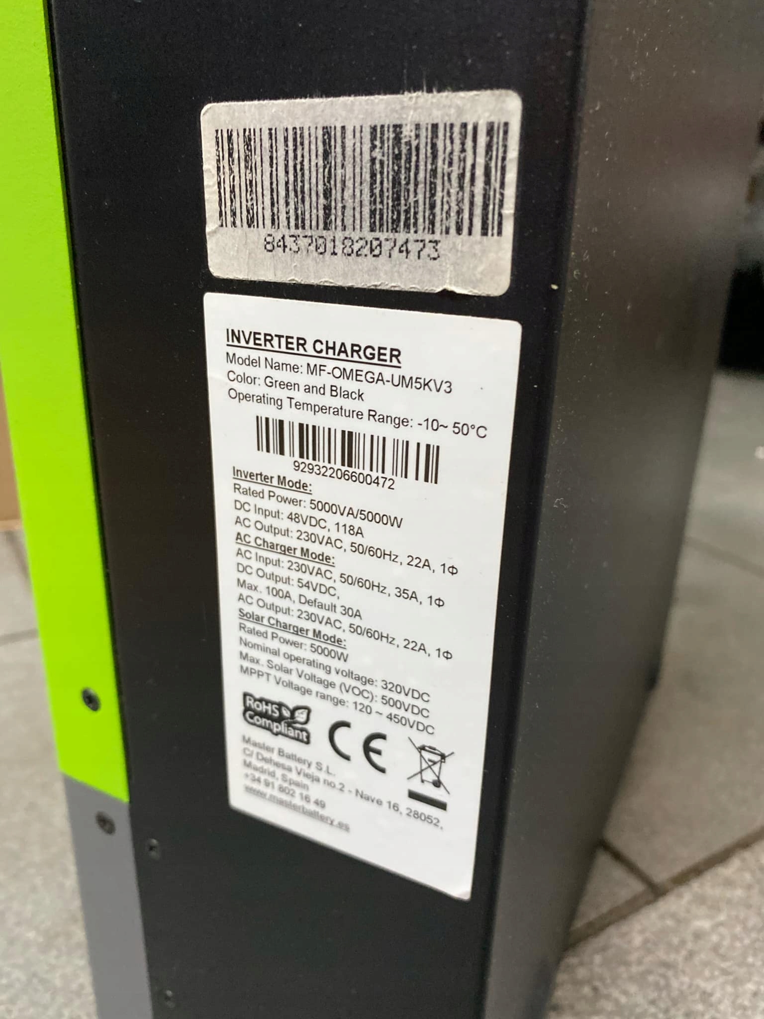 - До 4500 Вт на солнечных панелях: позволяет управлять фотоэлектрическим полем мощностью 4500 Вт. Настроив 14 панелей с ок. 340Вт при подключении последовательного модуля 7 мы можем достичь 4500Вт, которые позволяет устройство. Этот гибридный инвертор управляет энергией для прямого потребления и зарядки избыточной батареи.