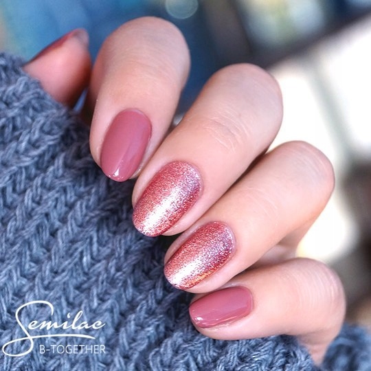 На затвердевший слой Semilac Base нанесите тонкий слой Semilac Color, а затем затвердеть с помощью УФ-лампы. Не наносите непосредственно на ногтевую пластину. Вы можете повторить нанесение Semilac Color для достижения удовлетворительного эффекта. Завершите укладку, нанеся и закрепив Semilac Top.