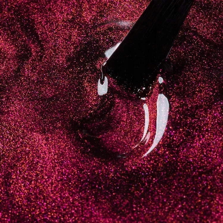 Красный гибридный лак с блестящими частицами Романтический отдых, безусловно, поможет вам выразить ваши сильные чувства в вашем стиле!
