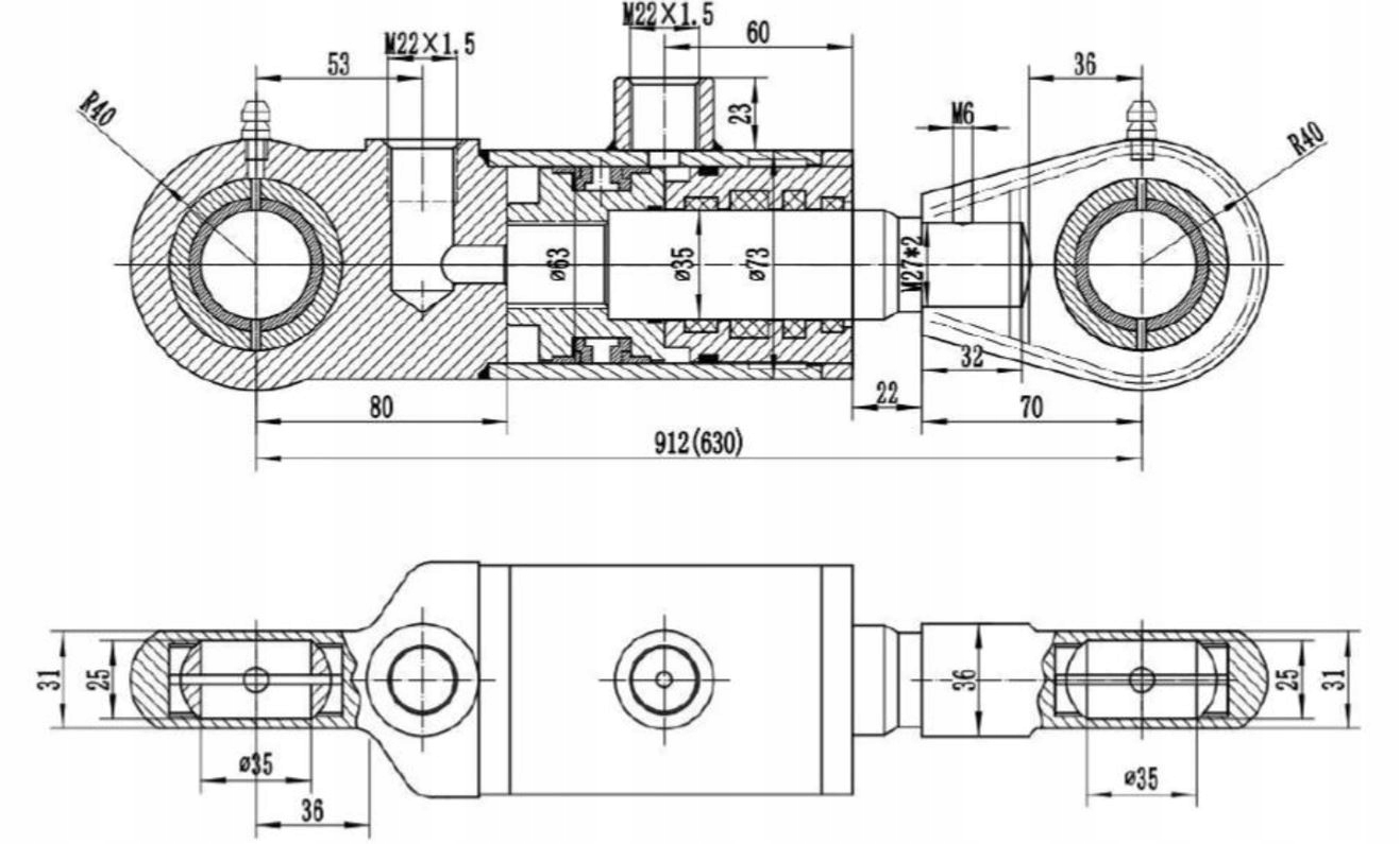 ГІДРАВЛІЧНИЙ ЦИЛІНДР 630мм ПОСИЛЕНИЙ 35мм ДЛЯ TURA