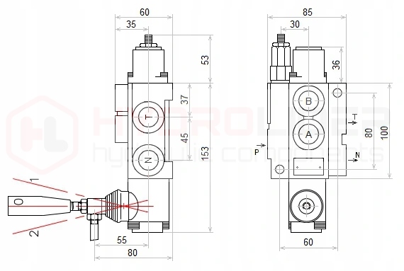 - Источник питания из насоса (P): внутренняя поток BSP 1/2 '