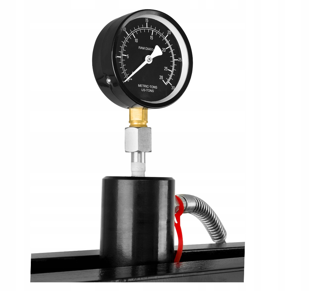 Устройство оснащено считываемым манометром с шкалой в тоннах - это позволит вам легко считывать значения давления, преобладающие в данный момент.