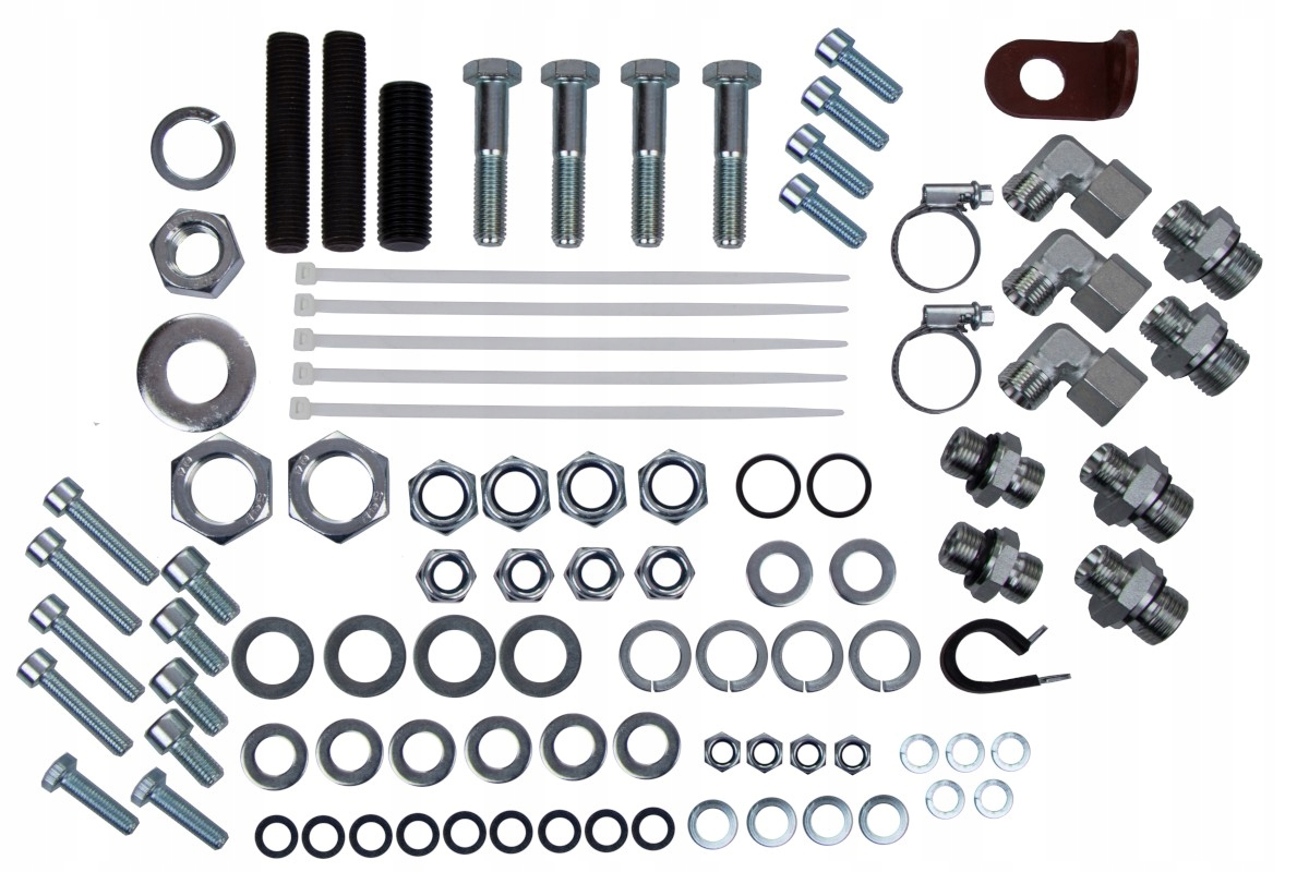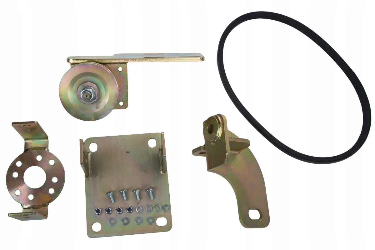 <р>1. Гидравлический насос <р>2. Опора насоса с ведущим колесом <р>3. клиновой ремень <р>4. Орбитрол 100 <р>5. Поддержка Орбитрола <р>6. Привод с шаровыми шарнирами <р>7. Зажим для крепления привода <р>8. Рулевой вал <р>9. Бак гидравлического масла <р>10. Набор винтов и соединений для установки <р>11. Комплект гидравлических шлангов