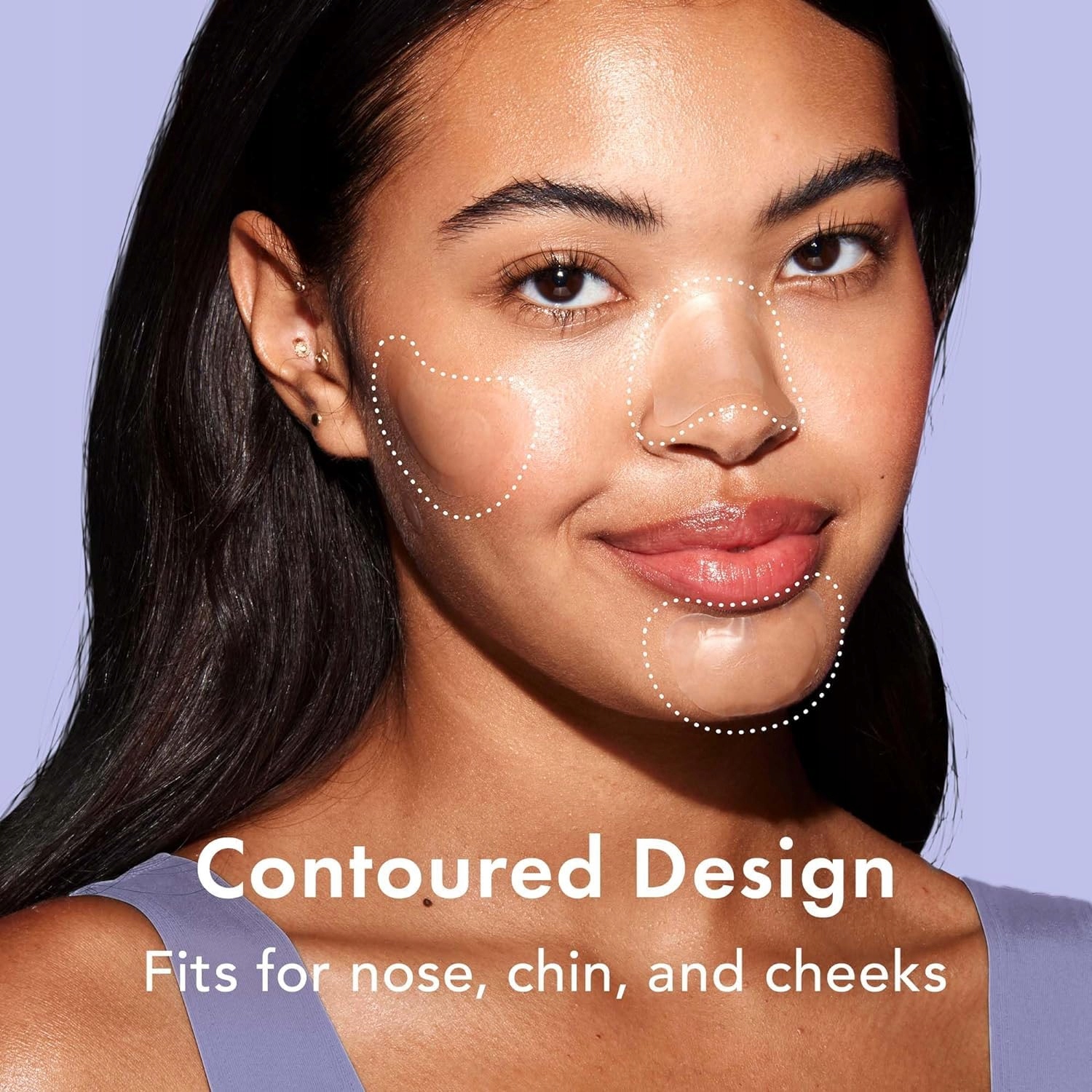 - ДОПОЛНИТЕЛЬНОЕ ПОКРЫТИЕ: пластыри увеличенного контура подходят для больших участков, таких как нос, подбородок и щеки. Размер патча: 31 мм х 46 мм.