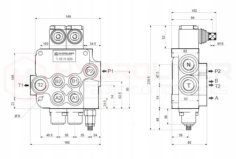 Гідророзподільник 2-секційний 80L 2P80 + підключення 27/22 Hydrolider
