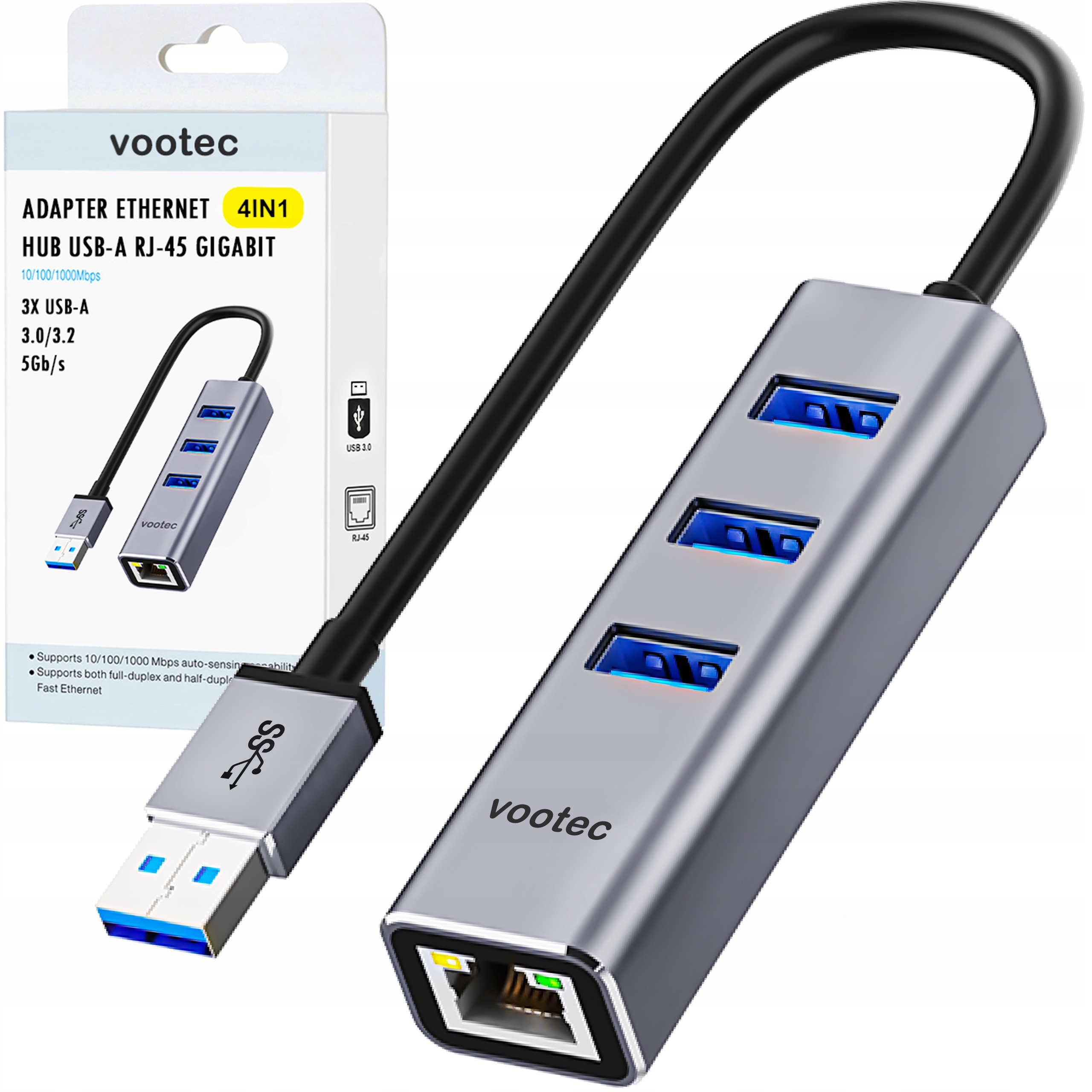 Концентратор Vootec USB 3.0 + Ethernet RJ-45