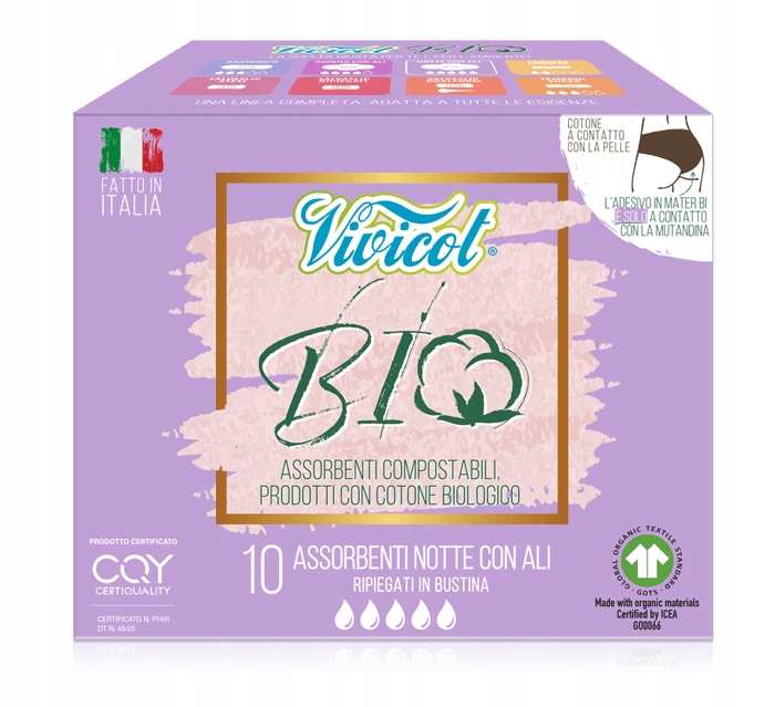 Серия продуктов VIVICOT BIO — это первые итальянские гигиенические прокладки, прокладки и тампоны, биоразлагаемые и компостируемые.