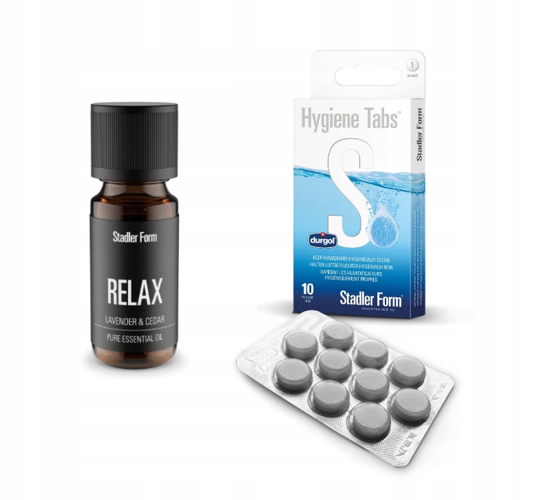 ГИГИЕНИЗИРУЮЩИЕ ТАБЛЕТКИ ДЛЯ УВЛАЖНИТЕЛЕЙ ВОЗДУХА STADLER FORM + НАБОР МАСЕЛ С АРОМАТОМ RELAX