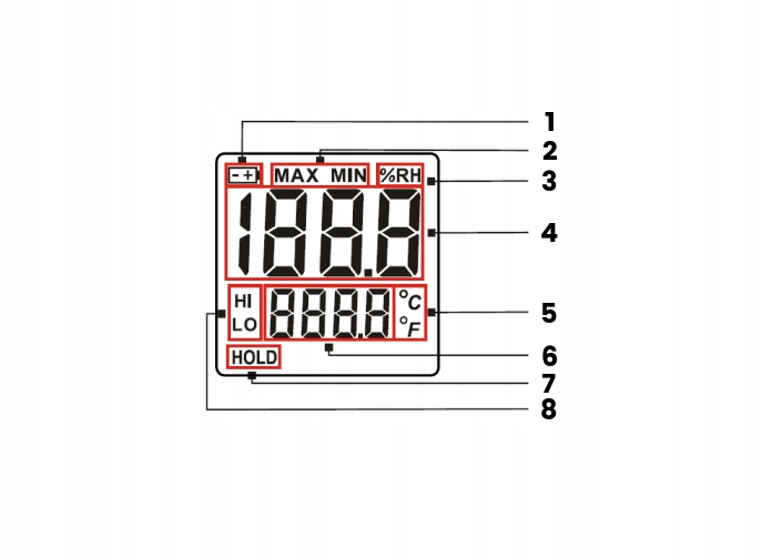 - Погрешность: 1°C или 1,8°F (для диапазона от -30°C до 0°C), 0,5°C или 0,9°F (для диапазона от 0°C до 70°C),
