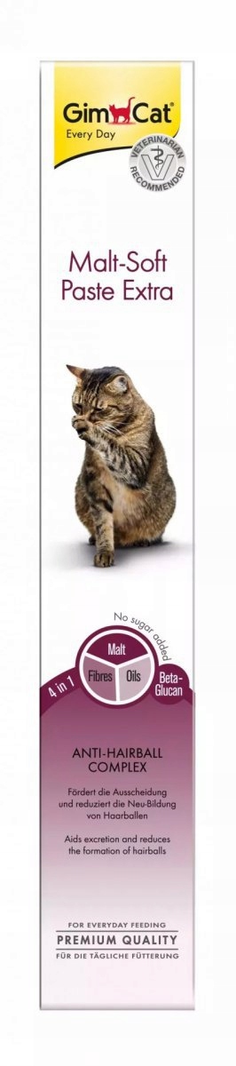Паста для удаления волос GimCat Malt-Soft Extra естественным образом помогает избавиться от проглоченной шерсти, содержит натуральный солод и ценные масла, а также дополнительно даёт энергию.